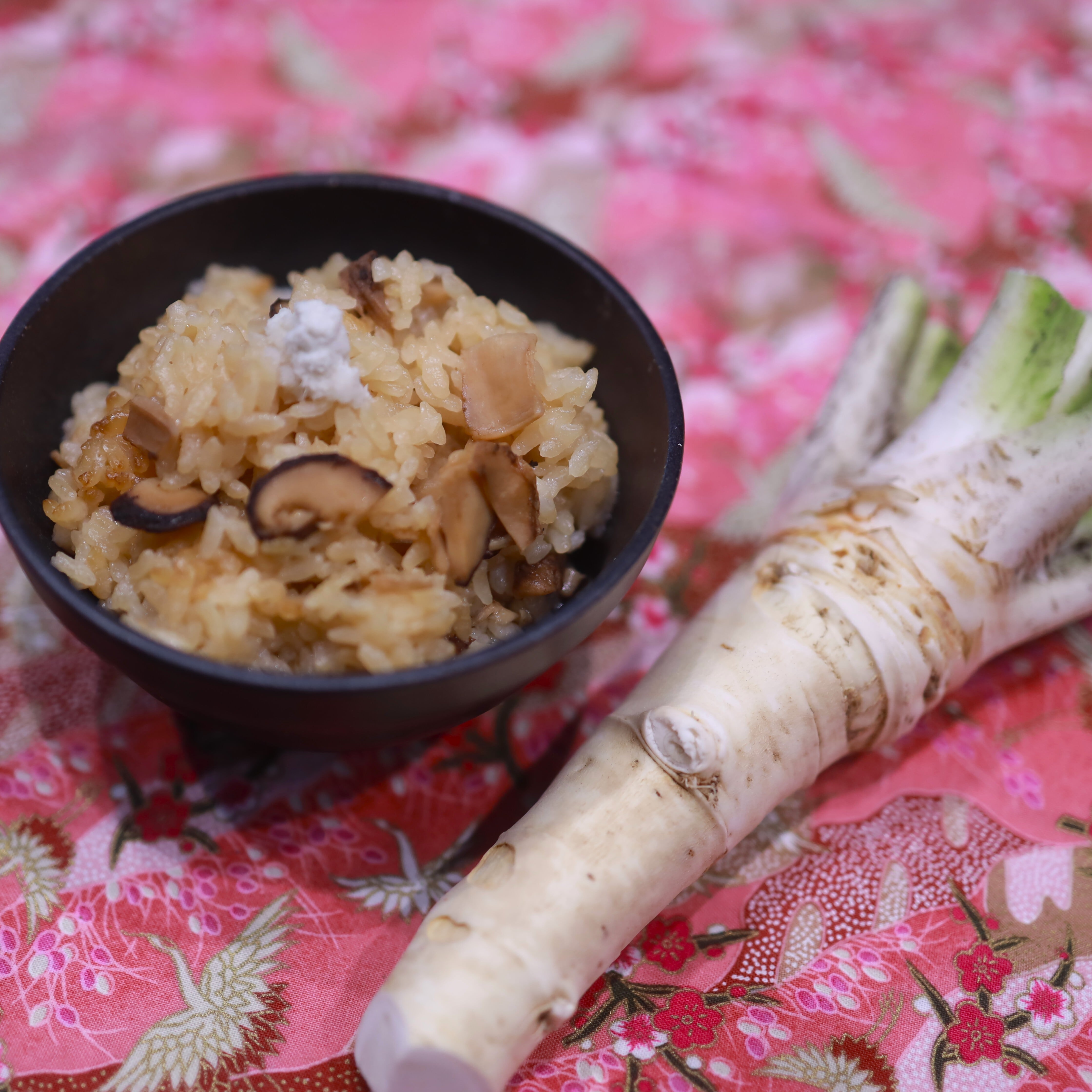 ・細かく切った野沢菜を乗せたご飯の上にラディッシュをのせ、お茶漬け!